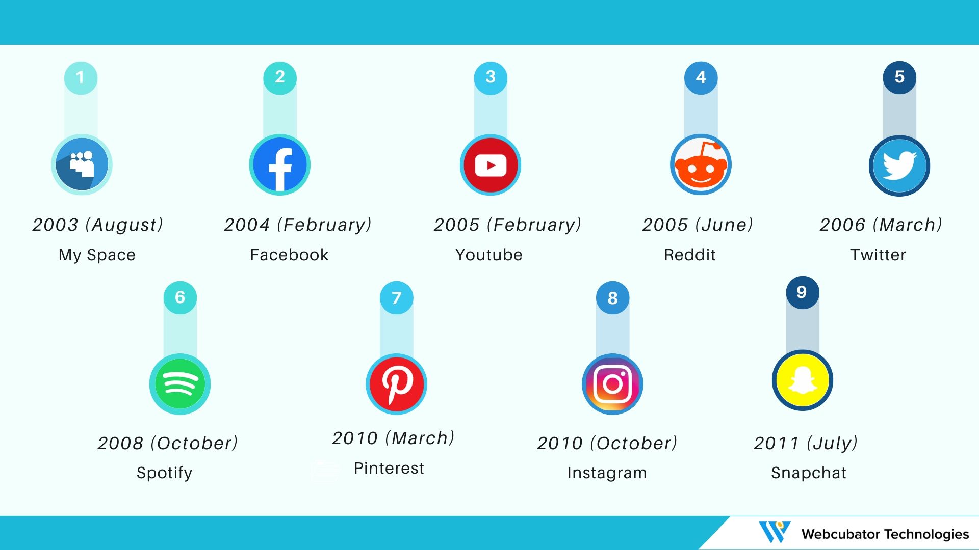 Below is the timeline of social media platforms: